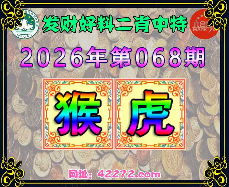 068期:【发财好料】 二肖中特【猴.虎】开:猴23准